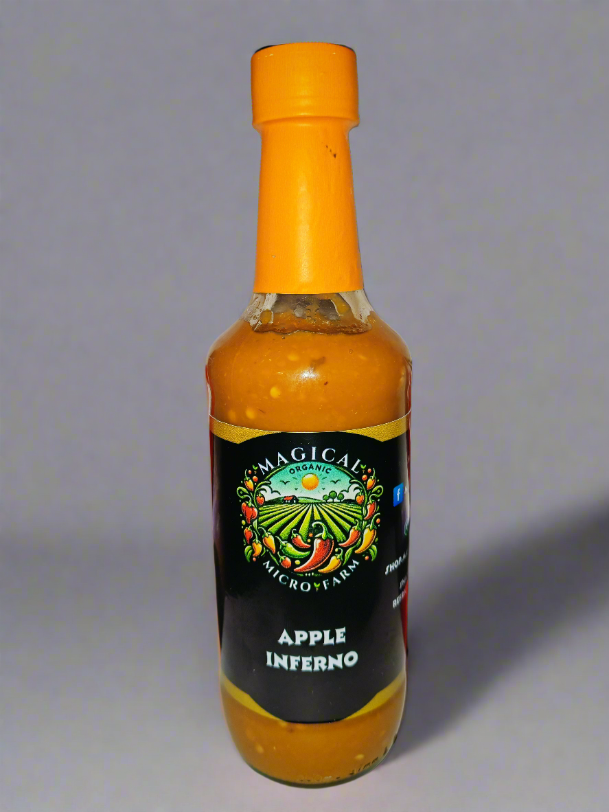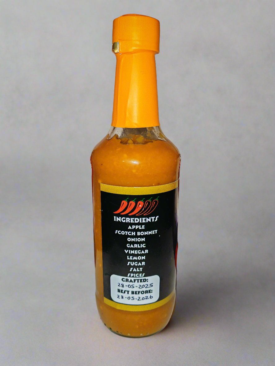 Sweet green apple meets the fruity fire of yellow Scotch Bonnets. Bright, tangy, and full of heat.